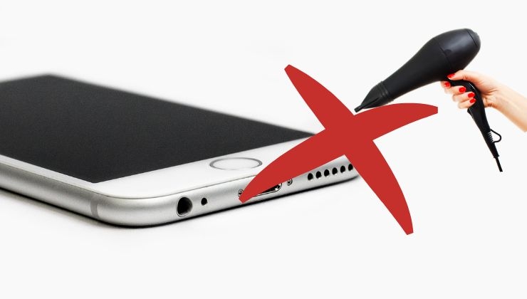 Purtroppo la maggior parte delle persone si affida ai metodi più conosciuti, ma che non sono adeguati e anzi rischiano di fare più danni del normale. Parliamo dell’immergere il cellulare nel riso (che si dice assorba l’umidità) o peggio ancora di asciugare il cellulare a contatto con un phon, perché questo potrebbe danneggiare seriamente a causa del contatto diretto con il calore.