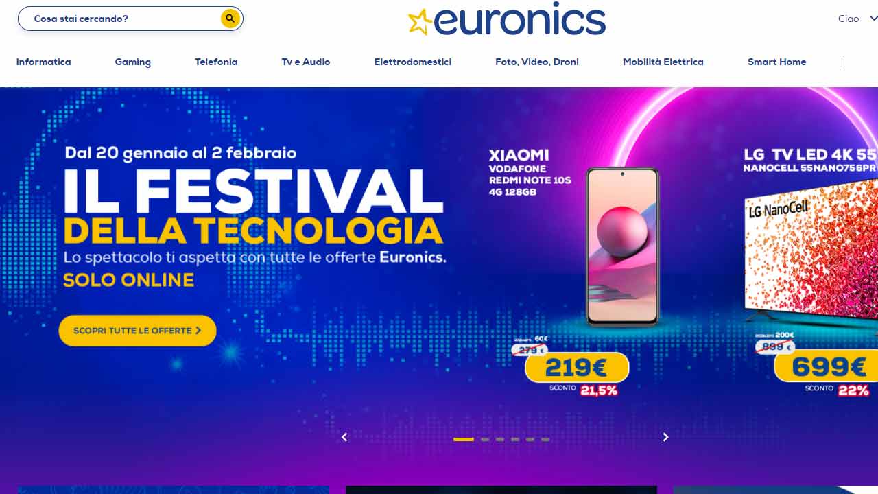 Partono oggi, giovedì 20 gennaio, le nuove offerte volantino Euronics. Contrassegnate come “Il festival della tecnologia“, le promozioni della nota catena di elettronica si protrarranno fino al prossimo 9 febbraio e saranno disponibili presso punti vendita dei principali gruppi Euronics Dimo aderenti all’iniziativa (nello specifico, Lombardia, Piemonte, Veneto, Trentino, Liguria, Emilia Romagna, Valle d’Aosta e Sardegna). Non appare casuale il riferimento al “festival”, tenuto conto che non manca poi così molto all’inizio del Festival di Sanremo 2022.